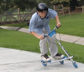 A ce moment vous tournez la roue avant pour avancer et pour trouver le rythme. Même si vous êtes très mauvais danseur, vous allez apprécier le mouvement rythmique du Trikke.